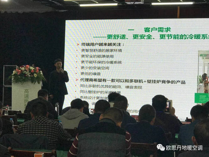 從舒適性、******性和節(jié)能性來看,“夏天制冷,冬天供暖”的空氣源熱泵冷暖系統(tǒng)是越來越多人的選擇。在會(huì)上,大區(qū)銷售總監(jiān)孫澤奇介紹了歐思丹直流變頻低溫風(fēng)冷熱泵應(yīng)用地暖空調(diào)二聯(lián)供系統(tǒng)。歐思丹熱泵機(jī)組壓縮機(jī)采用“直流變頻+EVI噴氣增焓技術(shù)”,實(shí)現(xiàn)超低溫-30℃穩(wěn)定運(yùn)行,-20℃制熱穩(wěn)定不衰減,能效高,采用“W-A-R變流量自平衡專利技術(shù)”、“******化霜及防二次長冰技術(shù)”等技術(shù),化霜速度極快。除此之外,經(jīng)過多次技術(shù)創(chuàng)新和改良,歐思丹空氣源熱泵已解決換熱效率低、化霜速度慢、升溫速度慢、噪音大四大痛點(diǎn),瞬間成為全場的亮點(diǎn)。